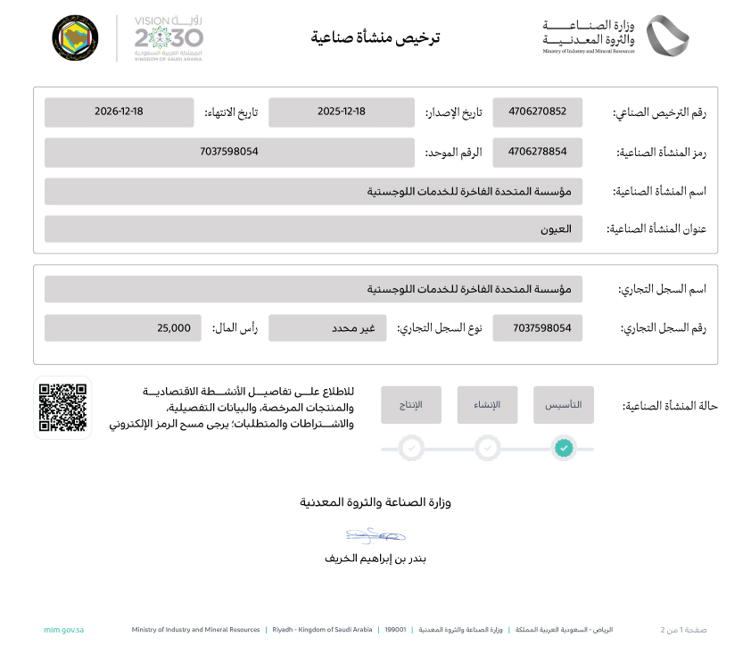 Aligned with the objectives of Saudi Vision 2030, the Group has expanded its business scope to include the industrial sector, through the development of localization projects, technology transfer initiatives, and the establishment and operation of industrial manufacturing facilities in collaboration with international partners. This strategic expansion aims to enhance local content, reduce reliance on imports, and build sustainable industrial capabilities that add long-term value to the national economy.